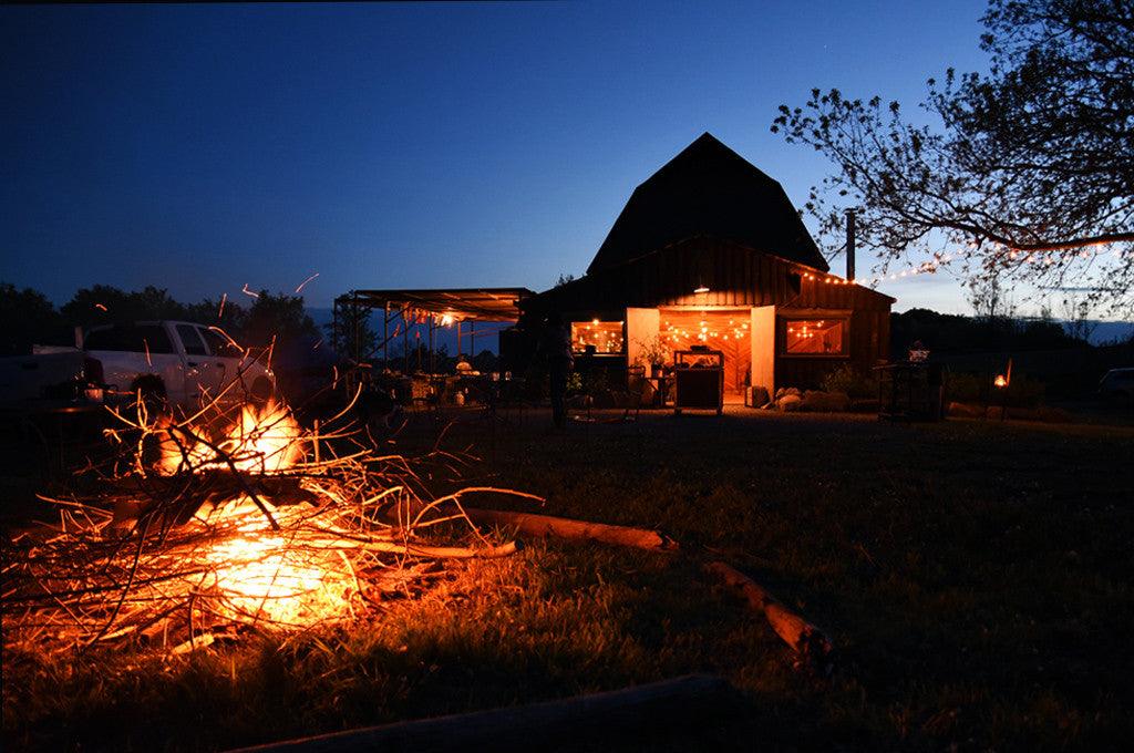 It is approaching midnight. The laughter and conversation drifts away on the wind with the last guests as they make their way home under a starry mantle of twinkling light. A dim illumination punctuated by the fireflies’ random bursts of light. I sit by the bonfire with my friends and wine collaborators for this evening Mary and Colin Stanners. Their vineyard and winery is a short walk up Station Road from here.
